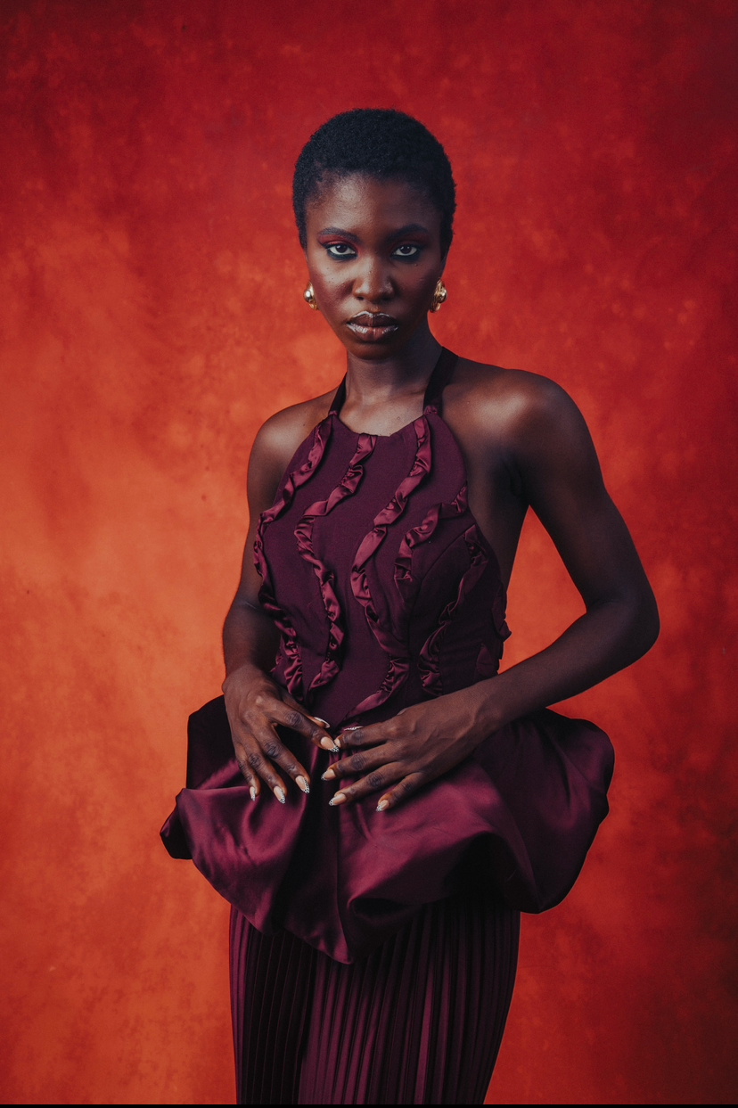 The Ameerah Dress epitomizes black-tie sophistication through its meticulously engineered construction. Crafted from a custom crepe-satin blend, this maxi silhouette features a commanding halter neckline paired with a daring low back that creates dramatic contrast. Luxurious pleating throughout the skirt provides movement and dimension, while a structured balloon peplum at the waist adds architectural interest and refined volume. This piece represents the pinnacle of formal elegance—designed for those who appreciate impeccable tailoring, bold design choices, and timeless evening wear that makes an unforgettable statement.